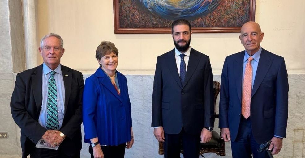 النائب جو ويلسون والسيناتور جين شاهين يلتقيان بالرئيس السوري أحمد الشعار والمبعوث الخاص لسوريا توم باراك. (مكتب النائب جو ويلسون)