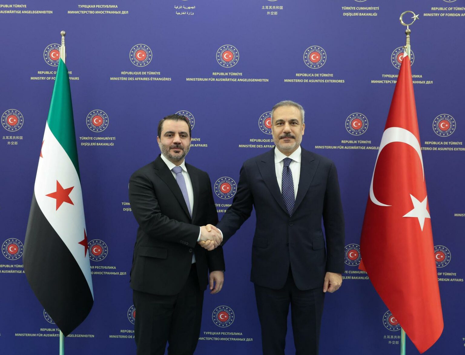 التقى وزير الخارجية هاكان فيدان مع نظيره السوري أسعد الشيباني في 8 أكتوبر 2025 بأنقرة. (وزارة الخارجية التركية)