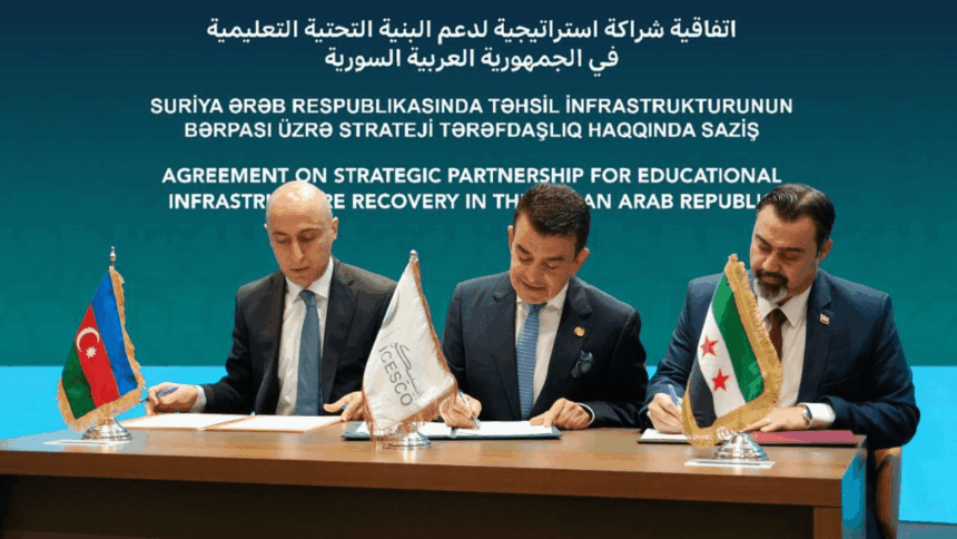 في خطوة مهمة نحو إعادة بناء قطاع التعليم في سوريا، وقّعت وزارة التربية والتعليم السورية اتفاقية شراكة استراتيجية ثلاثية في العاصمة المغربية الرباط، يوم الثلاثاء 17 فبراير، مع وزارة العلم والتعليم الأذربيجانية ومنظمة العالم الإسلامي للتربية والعلوم والثقافة (إيسيسكو).