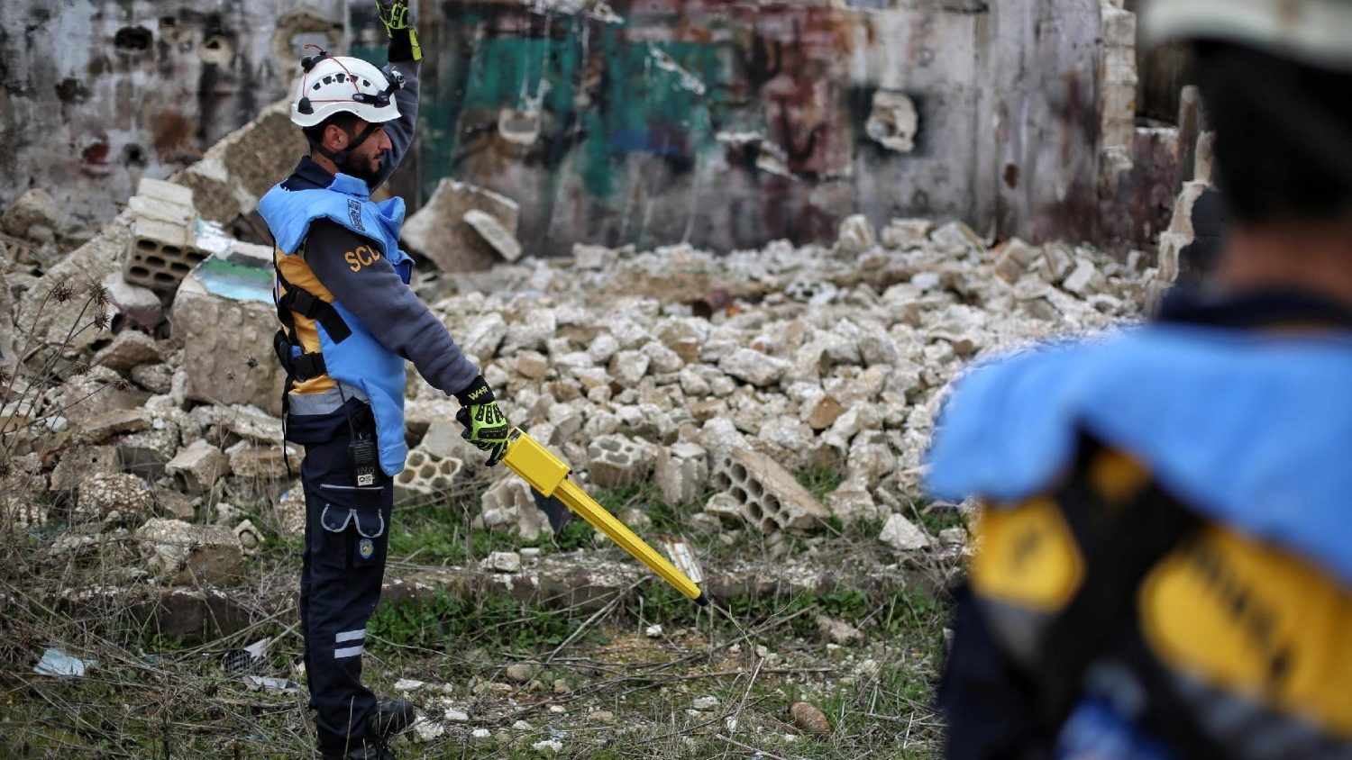 فرق الدفاع المدني السوري تزيل الذخائر غير المنفجرة في ريف إدلب (ANSA)